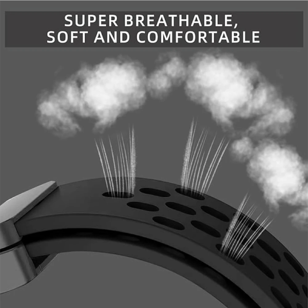 Bracelete Respirável: O design respirável permite uma ventilação eficaz, tornando-a ideal para atividades físicas e uso prolongado, sem causar desconforto ou irritações.