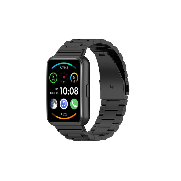 Bracelete Aço Stainless Lux + Ferramenta para Huawei Watch Fit 2 Active - Preto