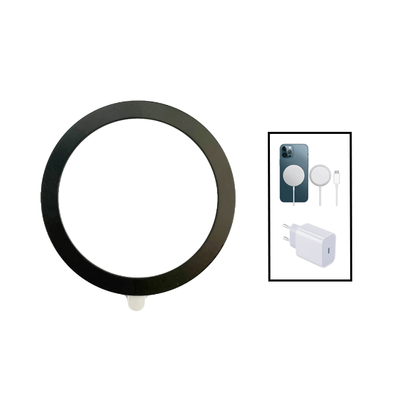 Kit Silicone Magsafe Magnetic Sem Fios + Base Carregador Type C FastCharge 20W + Magnetic Wireless Fast Charger para Apple Preto